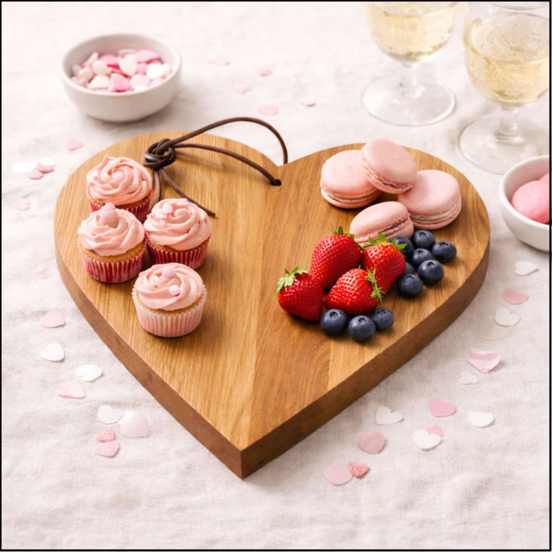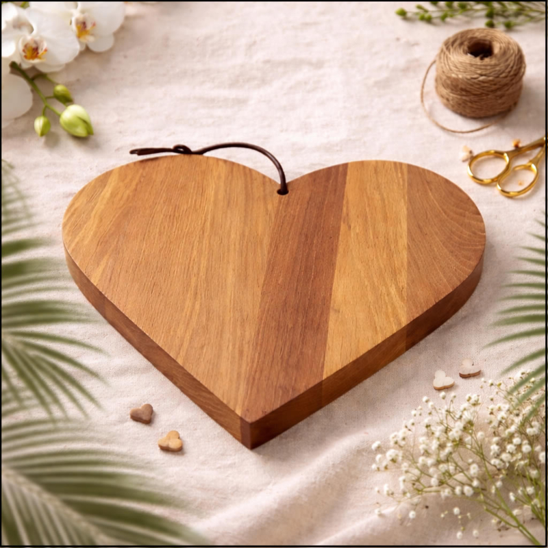 Liefde gaat door de maag, toch? Deze eikenhouten serveerplank in de vorm van een hart is hét bewijs. Een stijlvolle én functionele borrelplank, met ruimte voor fijne kazen, charcuterie en jullie mooiste herinneringen.