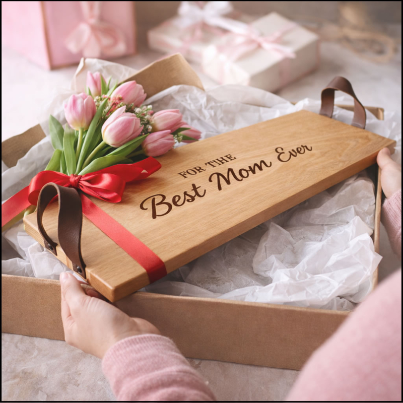 Houten dienblad met jouw eigen tekst erop gegraveerd