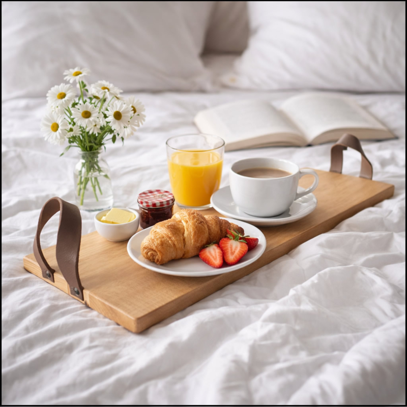 - Grote Serveertray van beukenhout met luxe leren handvatten