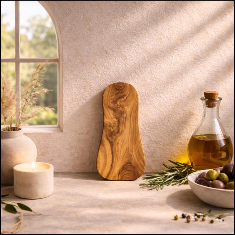 Olijfplank S – Handgemaakt Olijfhouten Plankje voor een Persoonlijk Cadeau