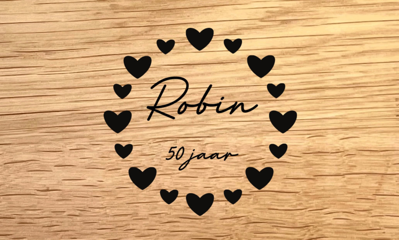 VERJAARDAG - DESIGN D - personaliseer deze graveringPersoonlijke borrelplank – Design D – voor de jarige vrouwEen stijlvol en persoonlijk cadeau met hartjesgravering – perfect voor haar 30e, 40e of 50e verjaardag